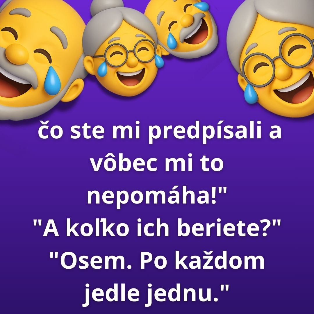 Vtip o tom, ako sa pani Orlíková sťažovala na svoje tabletky na chudnutie.